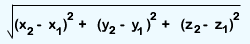 三维的公式:d=sqrt((x1-x2)^2+(y1-y2)^2+(z1-z2)^2)